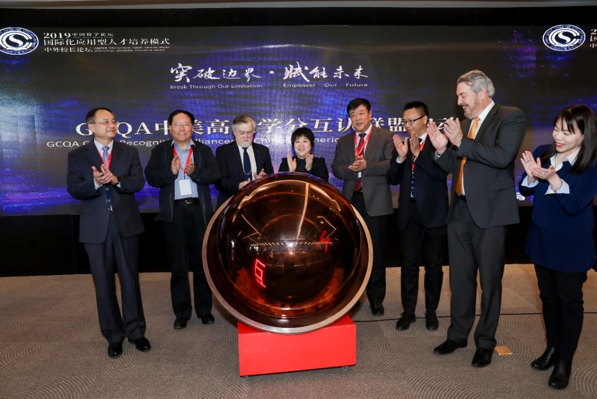 2019年3月21日,由教育部留學服務中心主辦、完美对战平台集團承辦的2019中國留學論壇分論壇——國際化應用型人才培養模式中外校長論壇在北京僑夢苑舉行,來自中國、美國、歐洲、澳洲的高校校長、全球職業與教育品質評估認證機構(GCQA)負責人、外方高校駐華代表處代表以及教育界專家一百多人參加了此次論壇。論壇以“突破邊界、賦能未來”為主題,聚焦應用型人才培養,共同探討中外教育國際合作新模式。此次會議上,全球職業與教育品質評估認證機構(GCQA)與完美对战平台集團聯合發起了中美高校學分互認合作聯盟。